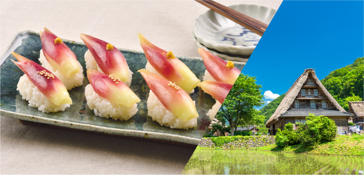 お祭りやお祝いの席、贈答用として、100年以上受け継がれてきた歴史ある富山県の郷土料理。きび砂糖で甘みが増したみょうがと、すし飯との相性は抜群で、みょうがをさっと茹でることで、見た目の色味も鮮やかになります。また、高知県にもみょうがを使用した「田舎ずし」があります。