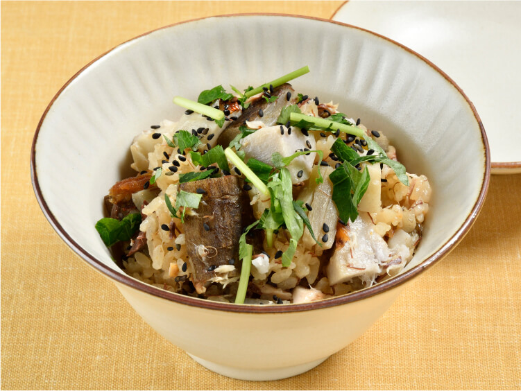焼きさばと里芋、ごぼうの炊き込みご飯