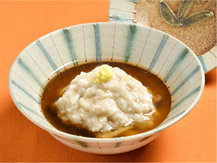 もちもちの加賀れんこんを優しい甘みのとろとろ餡で包んだホッとする一品。