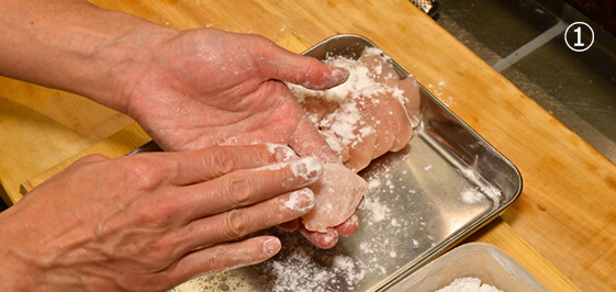 パサつきやすいむね肉を、Aの“塩糖水”に漬けることで、柔らかくジューシーに仕上がります。ほかのお肉にも使える技です。