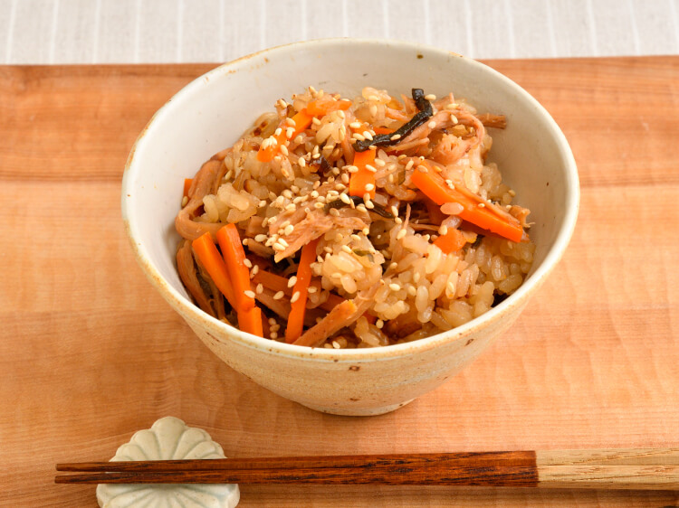 名前通りのいかとにんじんの香りと旨みから、お酒のつまみとしても好まれていたのを炊き込みご飯としてアレンジしました。