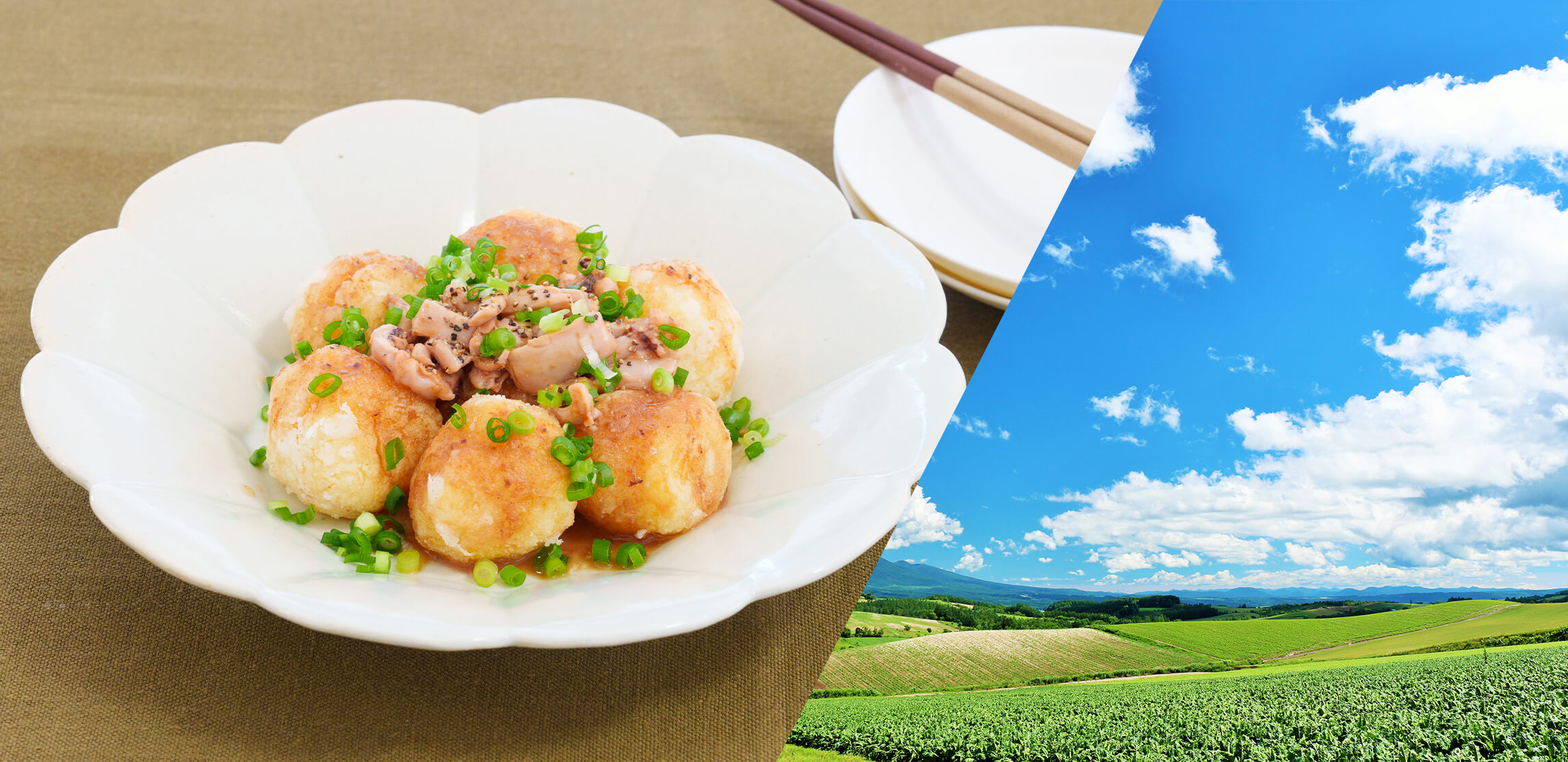 じゃがいも揚げまんじゅう 塩辛バターソース北海道